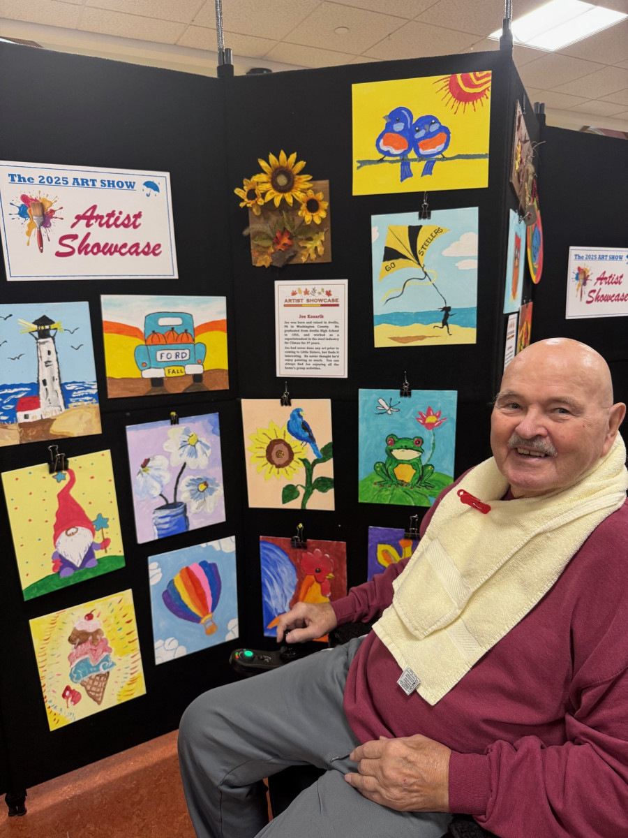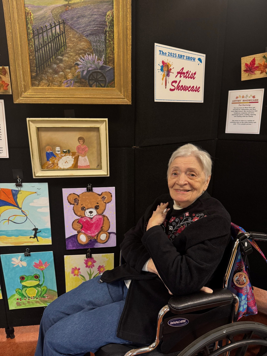 In October the Activities department hosted an Artshow to showcase the artwork, painted ceramics, and written poems/stories from our talented Residents. A brief biography was included on each Resident, many of whom never had the opportunity to explore art prior to moving into the Home.