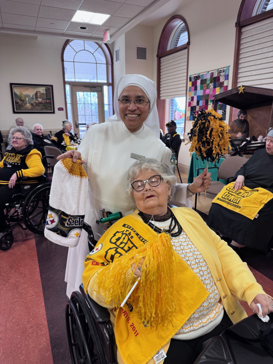 The Residents of the Little Sisters of the Poor Home gathered in the auditorium on Monday, January 12 for a Pittsburgh Steelers Fashion Show & Pep Rally.